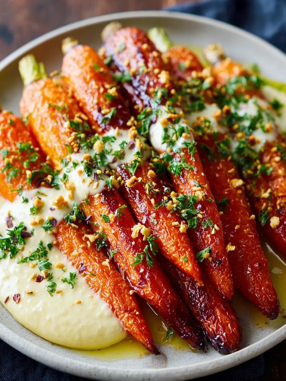 Top your roasted carrots with fresh herbs like parsley or cilantro to add a splash of color and freshness right before serving. A sprinkle of sesame seeds can add an enjoyable crunch, enhancing the overall texture of the dish.