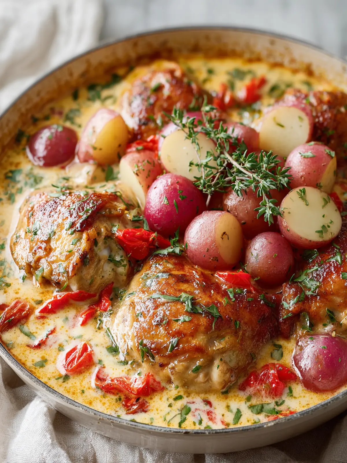 For evenly cooked potatoes, slice them into uniform pieces. Baby potatoes or Yukon Golds work wonderfully as they maintain their shape and absorb the creamy sauce beautifully.