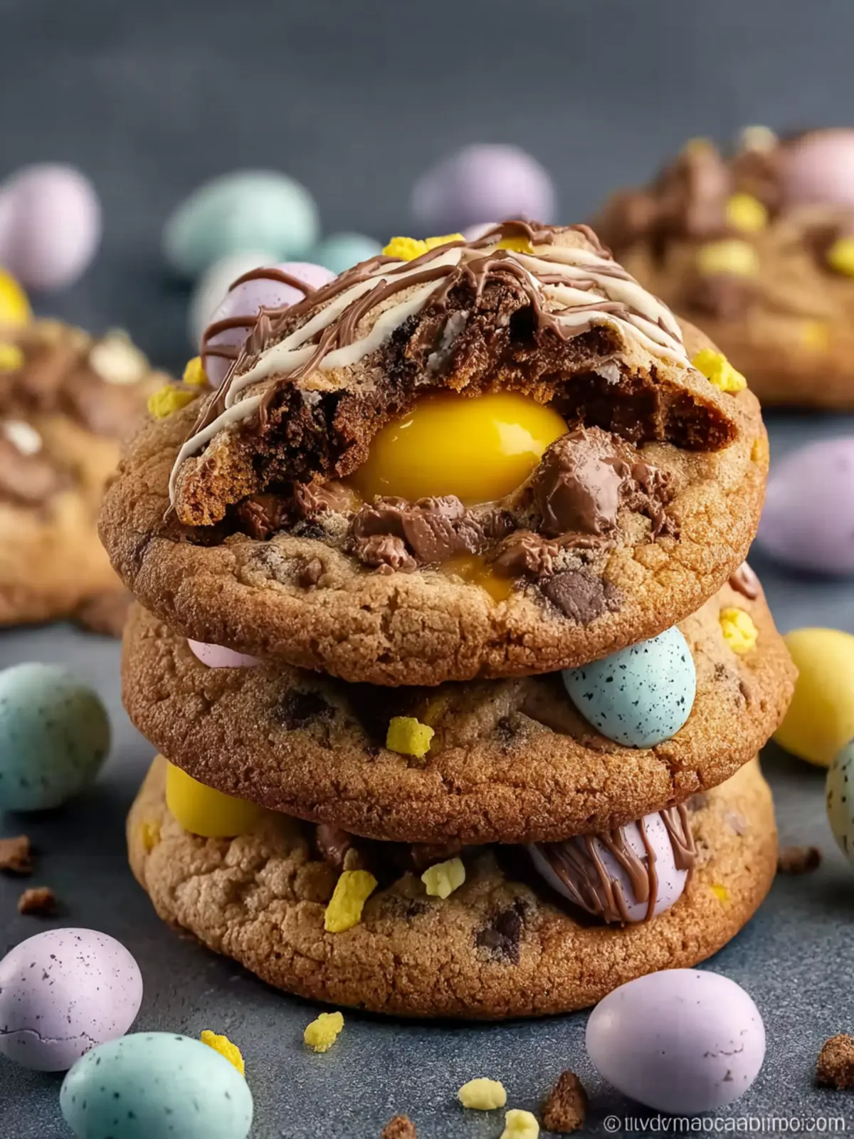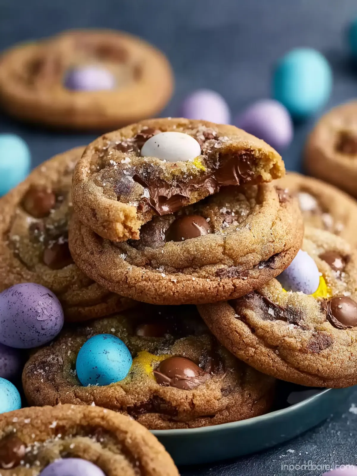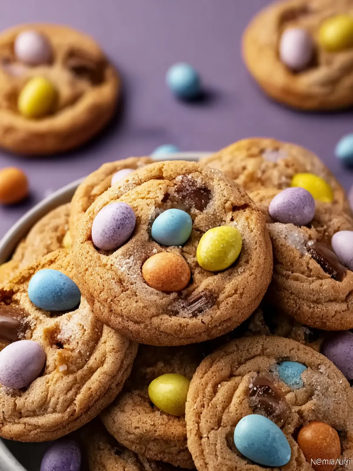 Soft and chewy cookies loaded with mini Cadbury eggs and chocolate chips, perfect for any occasion.