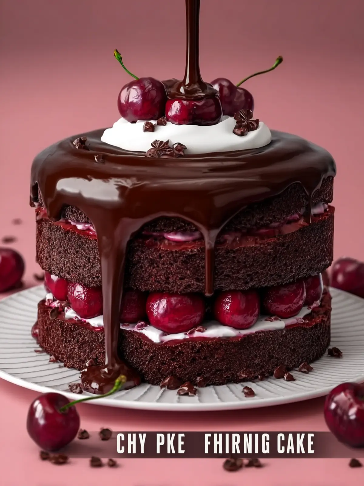 This delicious chocolate cherry cake features rich chocolate layers filled with cream cheese and cherry filling, topped with smooth chocolate frosting.