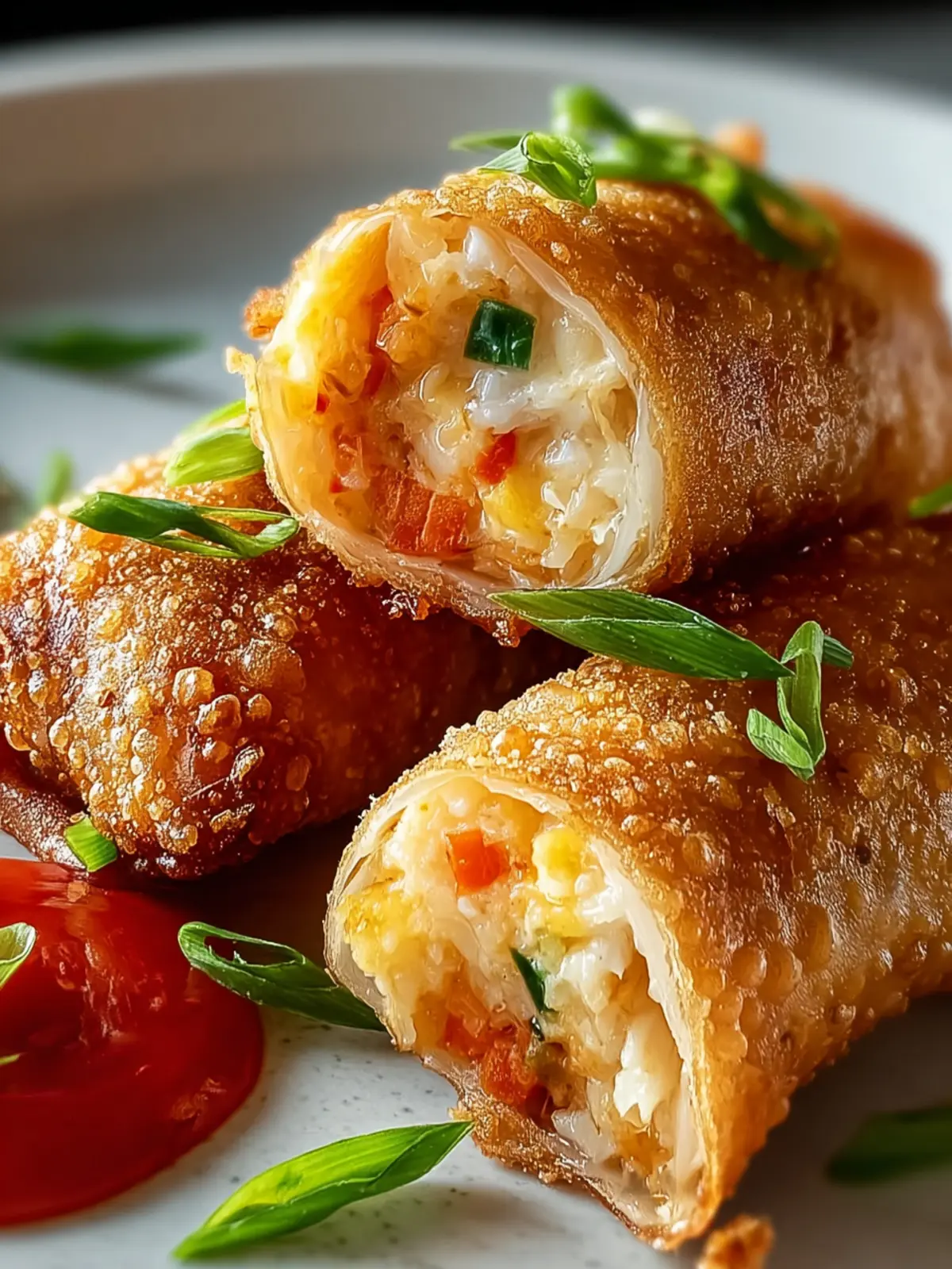 Green onions bring in a burst of flavor and color. Their mild, slightly sweet taste complements the crab, enhancing the overall profile of the crab cake egg rolls. Finely chopped, they add both visual appeal and a delightful crunch.
