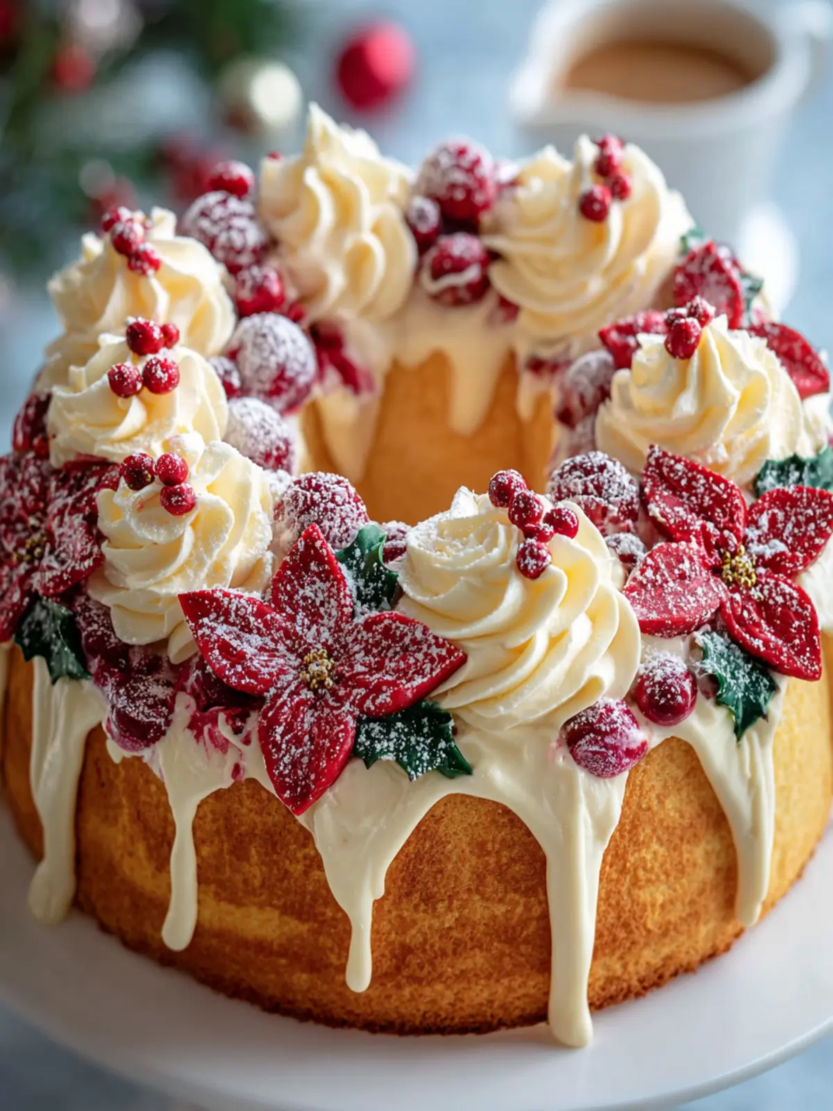 These thoughtful ingredients come together to craft a cake that is not only delicious but also a stunning centerpiece for your holiday celebrations. Embrace the season and make this joyous recipe part of your holiday traditions!