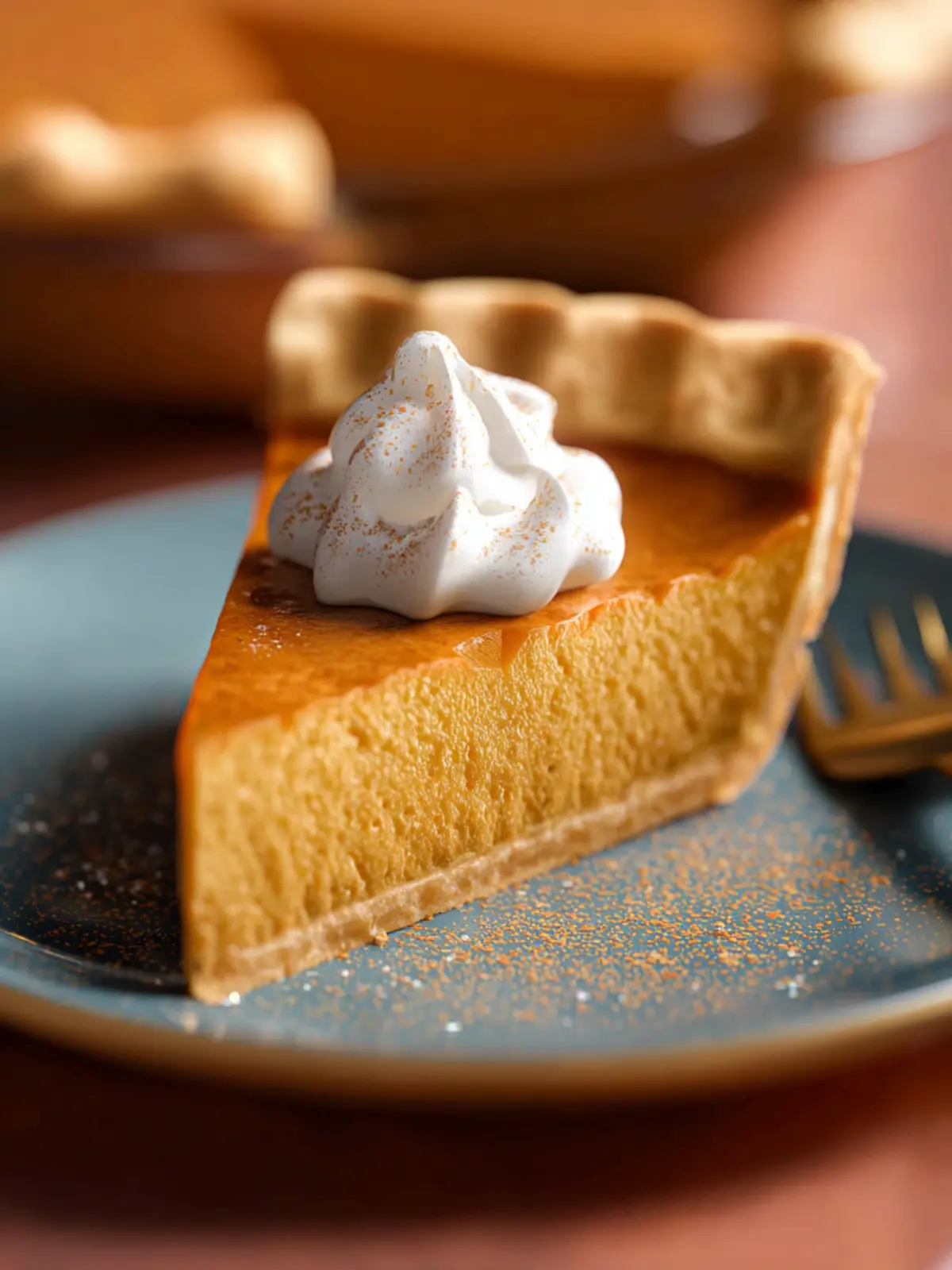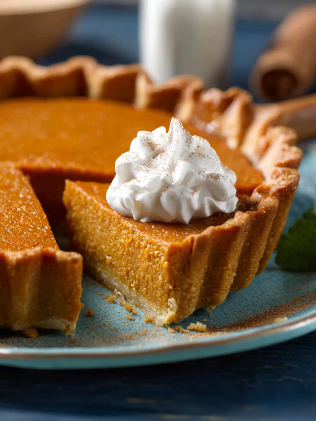 • Coffee or Tea: A warm cup of pumpkin spice tea or a rich chai latte complements the pie’s flavors, making for a cozy dessert experience.