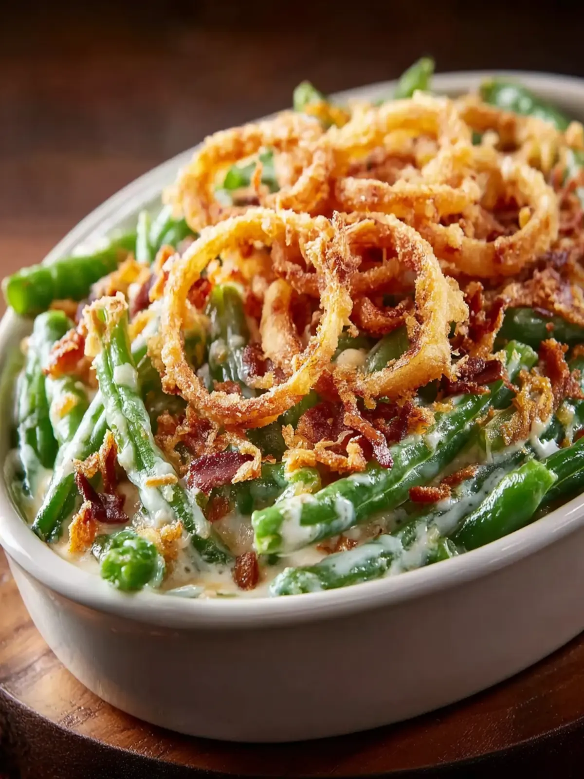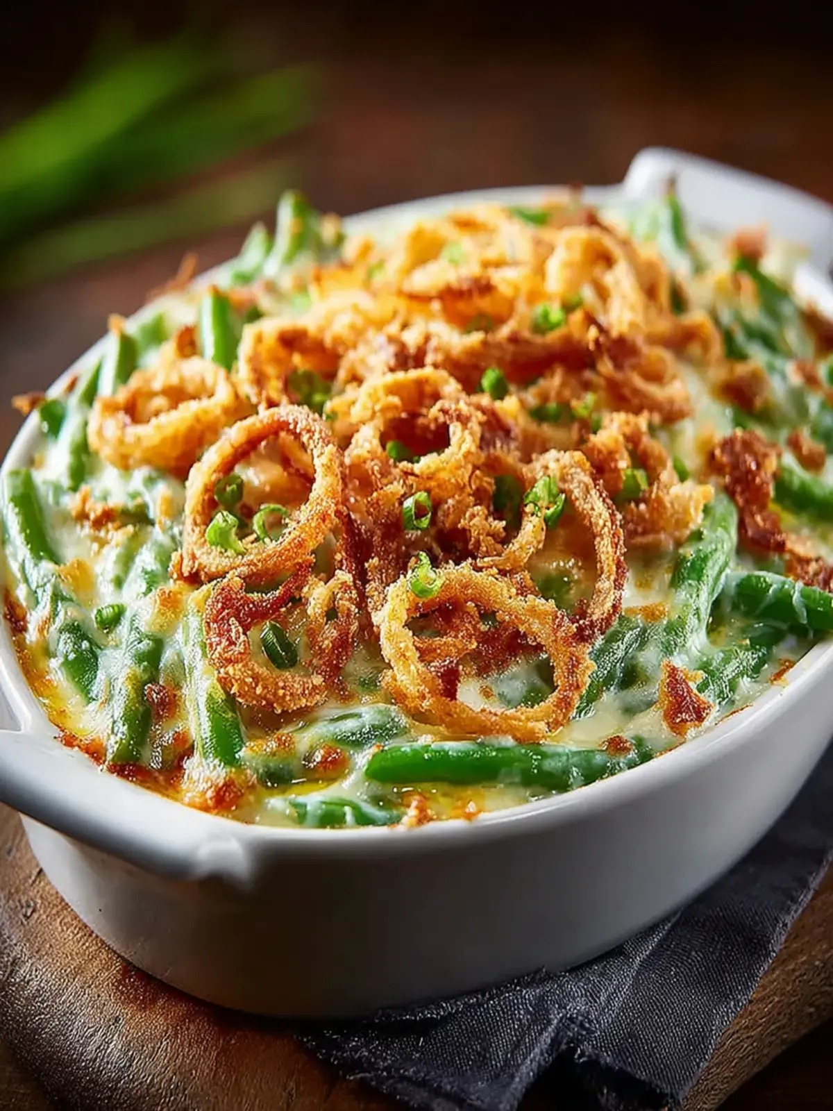 - Serve and Enjoy: Let the casserole sit for a few minutes before serving—it’ll thicken slightly as it cools. The creamy sauce, tender green beans, and crispy onion topping make every bite absolutely irresistible.