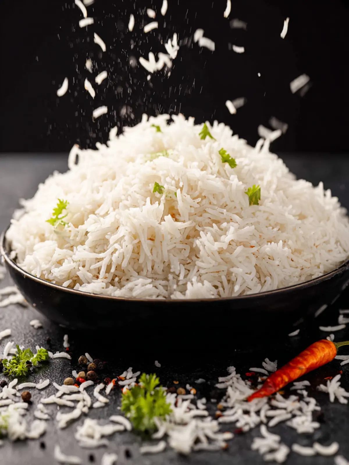 Basmati Rice: Choose high-quality, long-grain basmati rice for the best results. Rinsing the rice under cold water removes excess starch, ensuring each grain is light and fluffy instead of sticky.