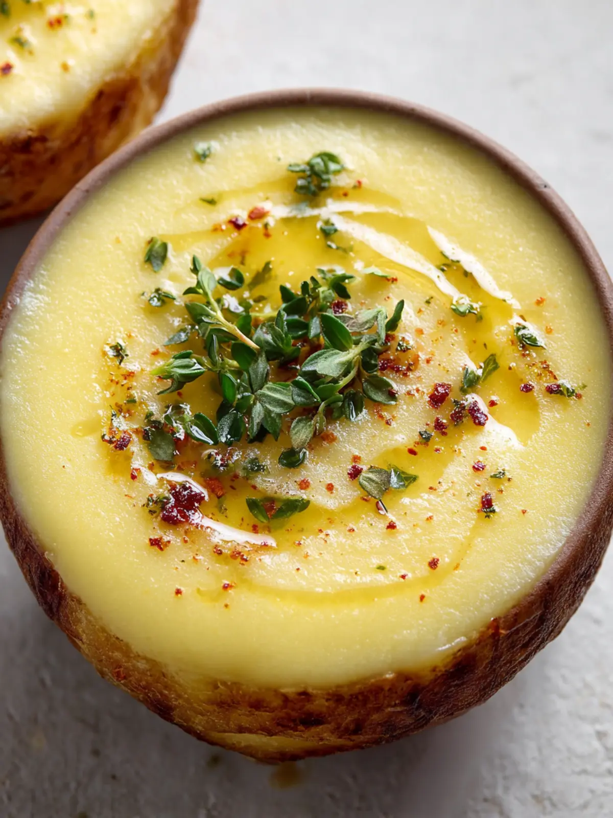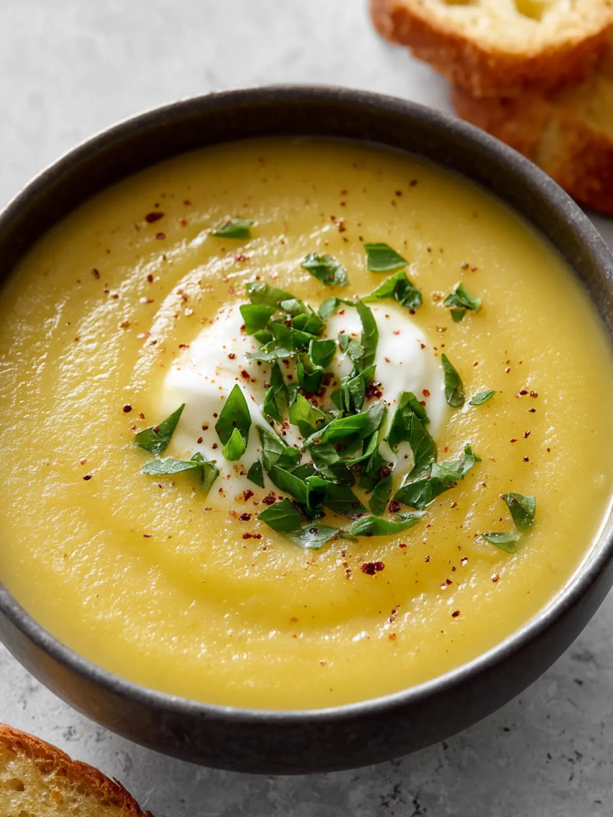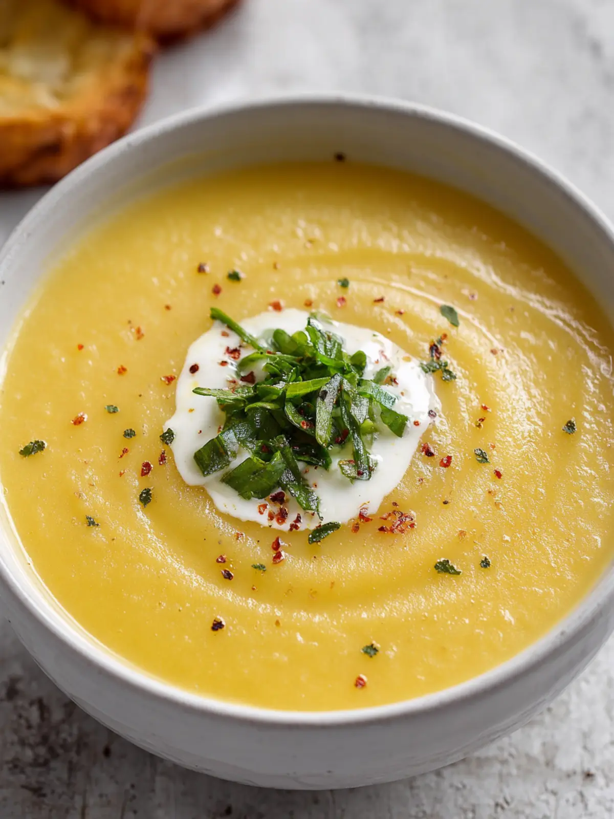 Elevate your soup by garnishing it with freshly chopped chives or a drizzle of cream. A sprinkle of crispy bacon or croutons can add a delightful crunch that contrasts beautifully with the soup’s texture.