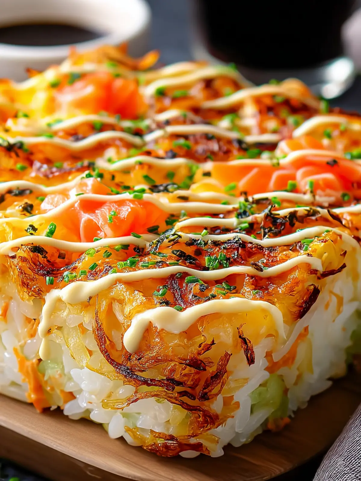 What makes this recipe truly special is how it combines familiar ingredients in unexpected ways. The creamy, seasoned rice serves as a delightful base, topped with a luscious blend of seafood, cream cheese, and spicy mayo—which together create a flavor explosion that rivals your favorite sushi rolls.