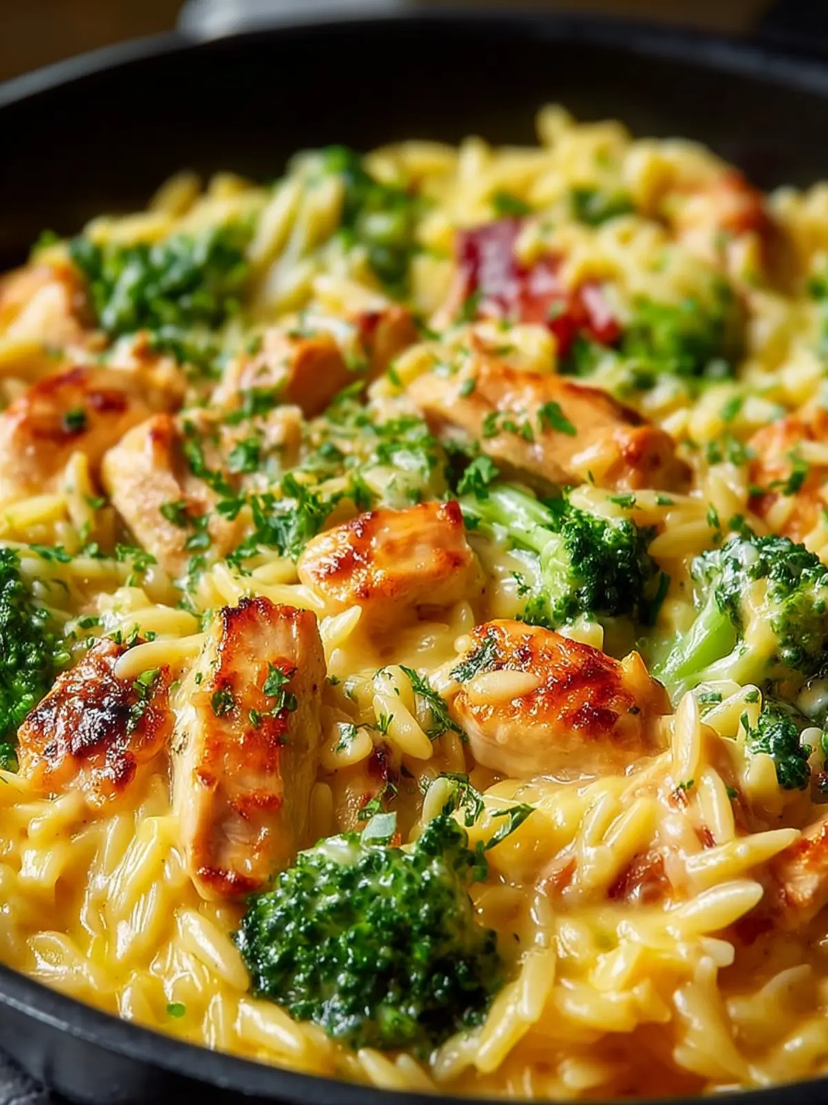 One Pot Cheesy Chicken and Broccoli Orzo That’s Comforting Goodness