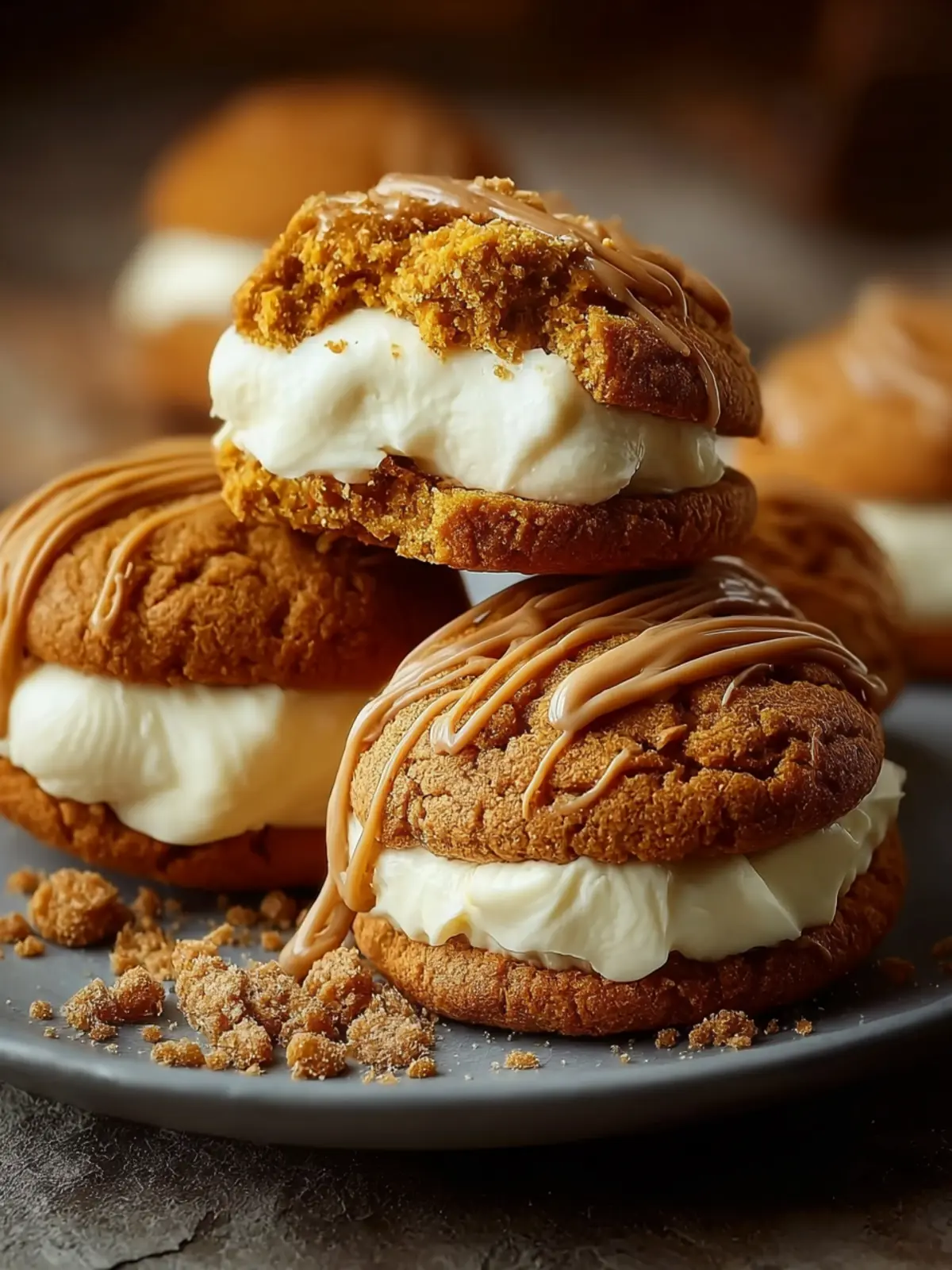 Delicious pumpkin cookies stuffed with a creamy cream cheese filling, perfect for fall!