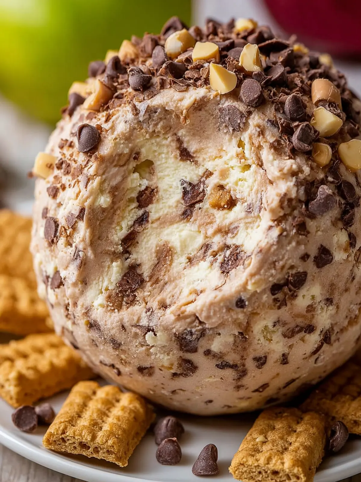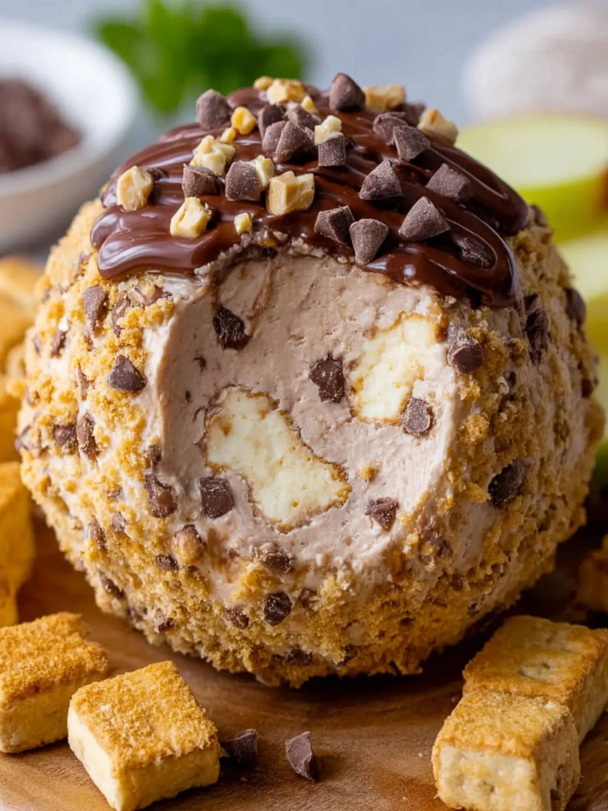A deliciously rich and creamy peanut butter chocolate cheese ball, perfect for parties or gatherings!