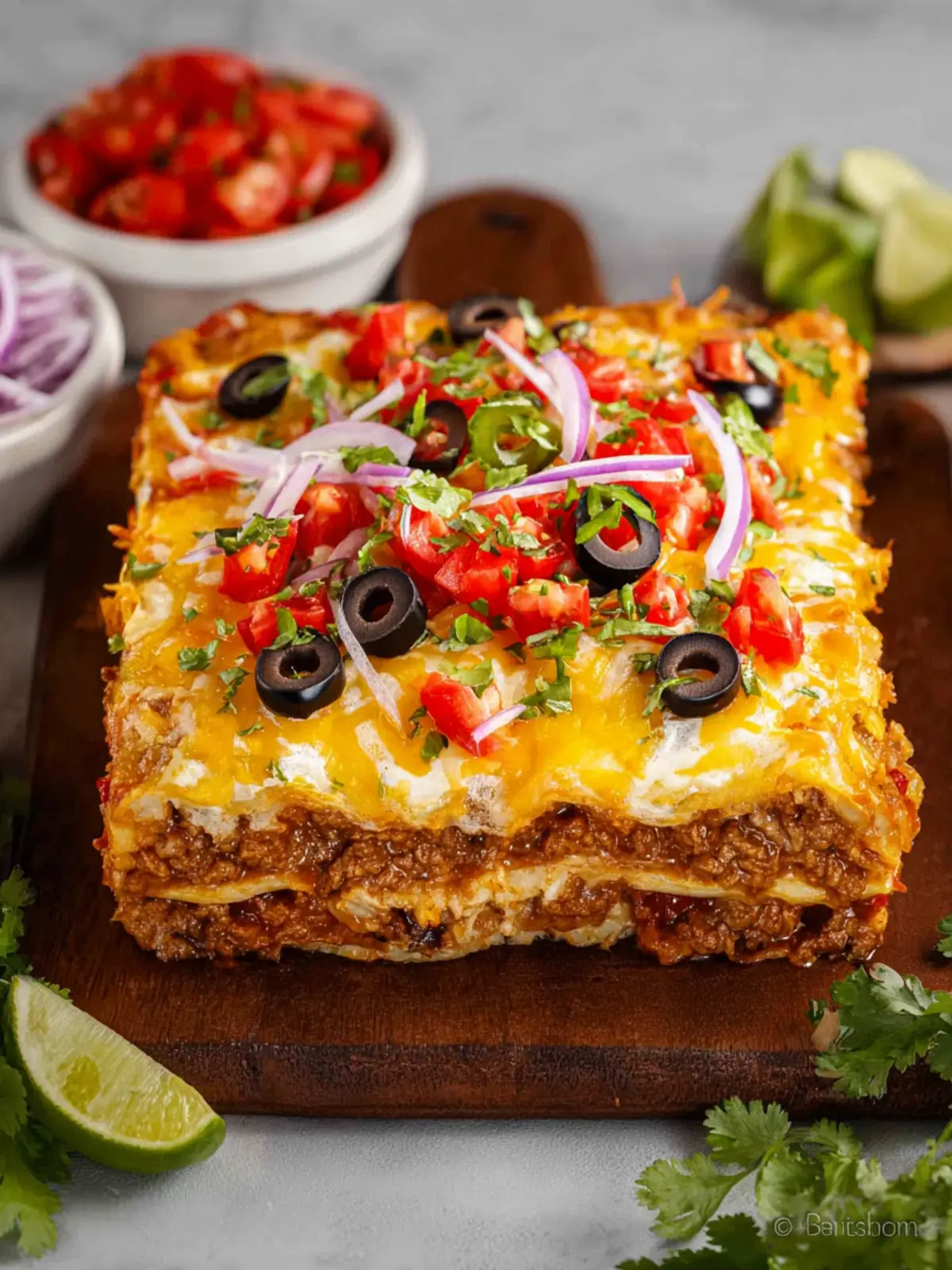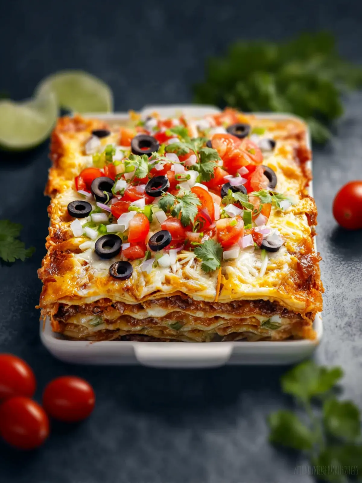 A delicious and easy taco lasagna that’s perfect for family dinners or gatherings.